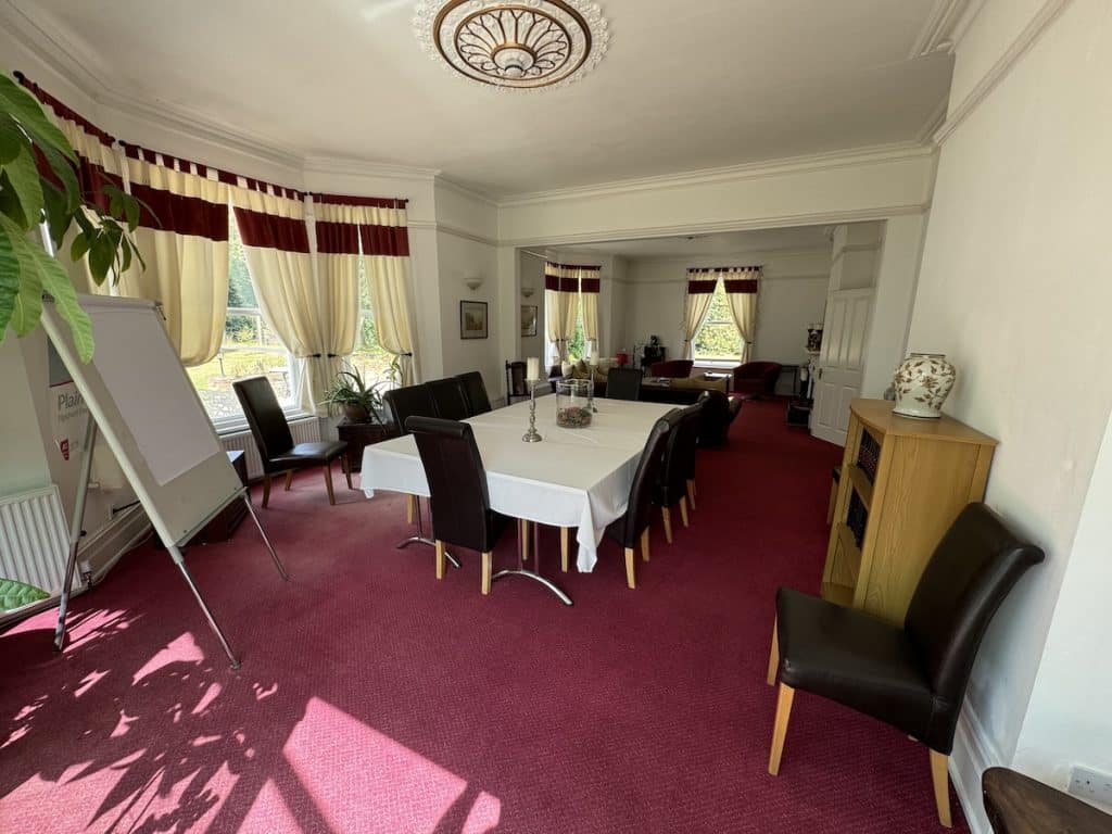 Meeting facilities for up to 12 people. Meeting room overlooking gardens and terraces.